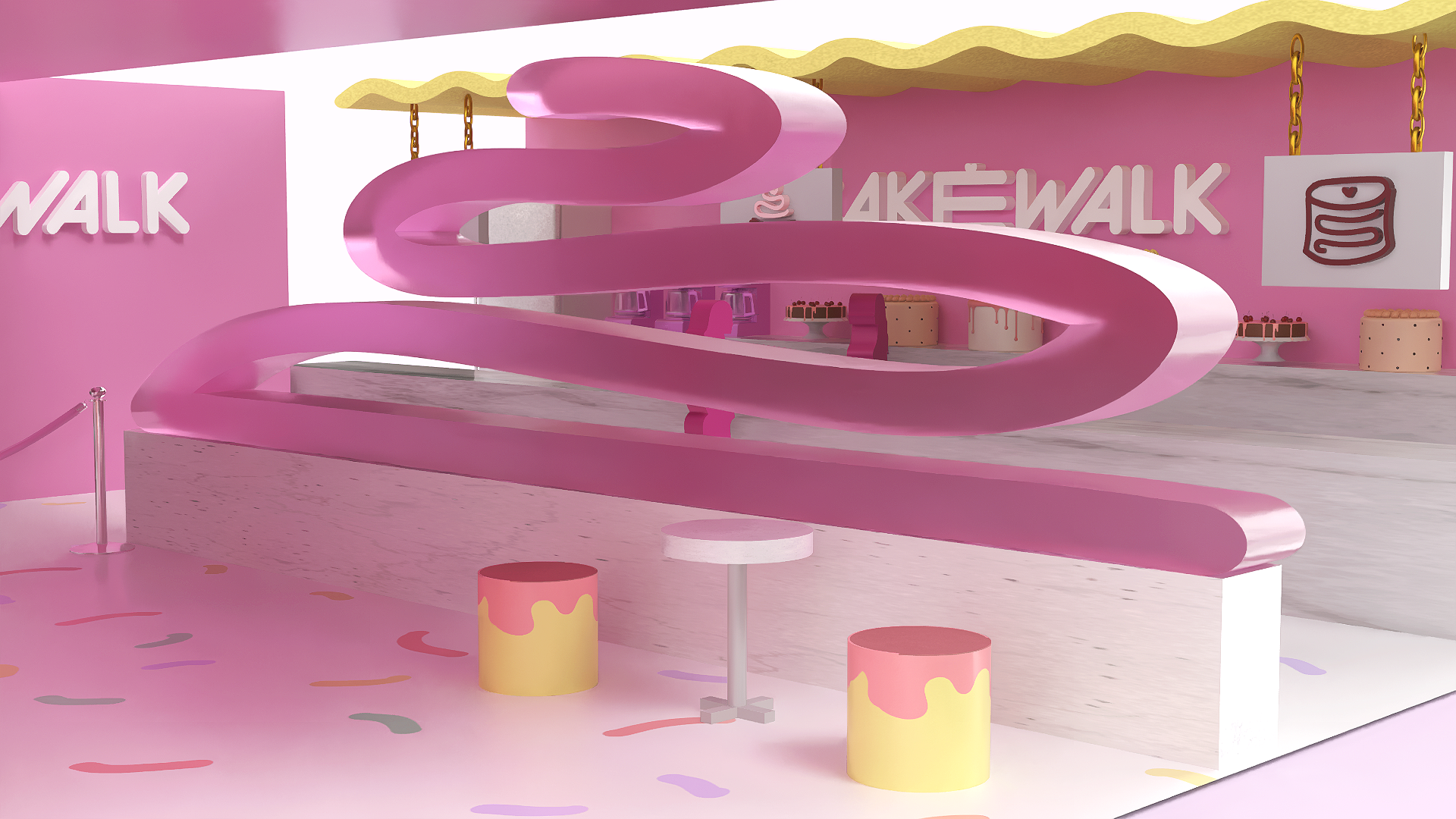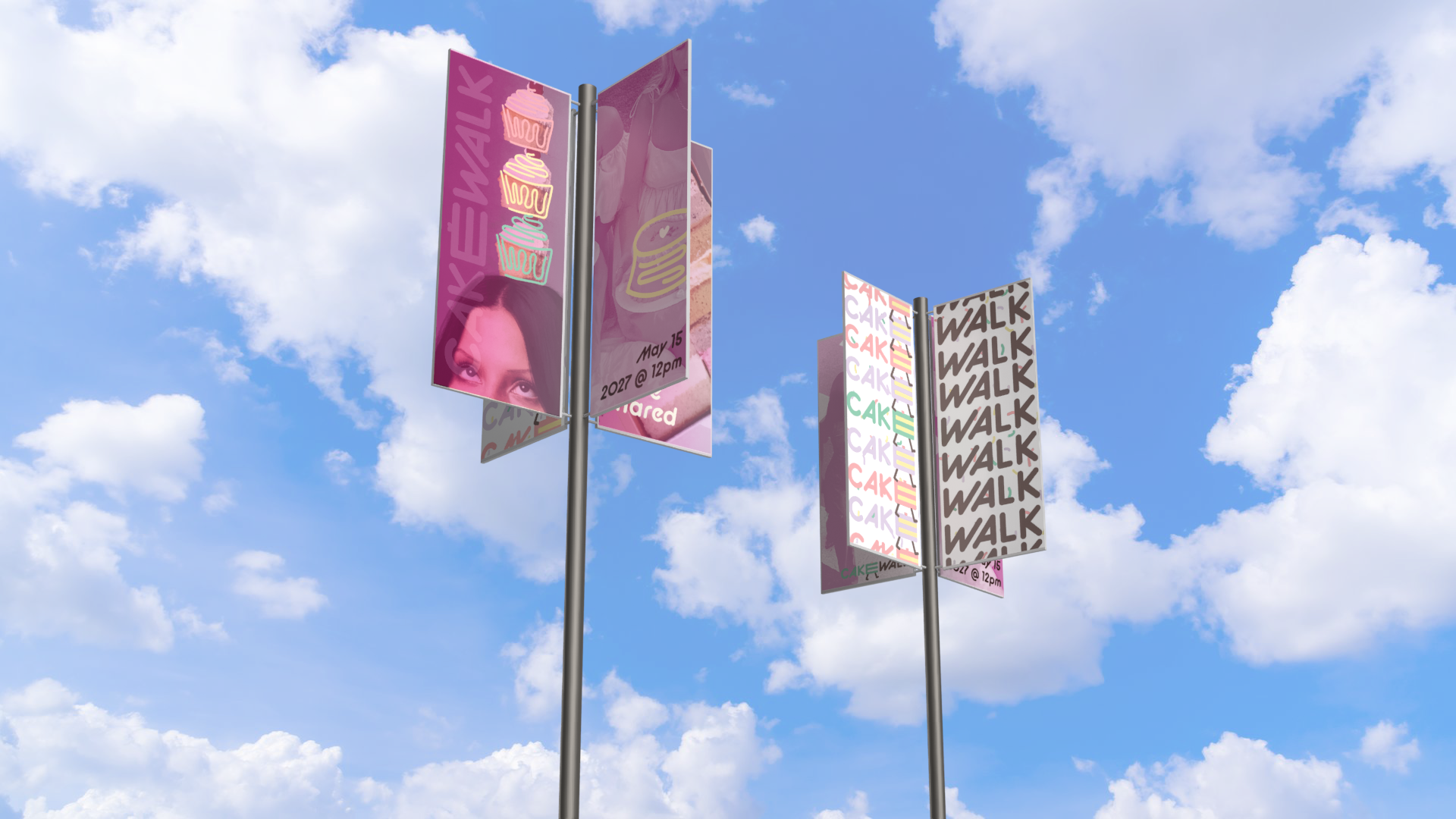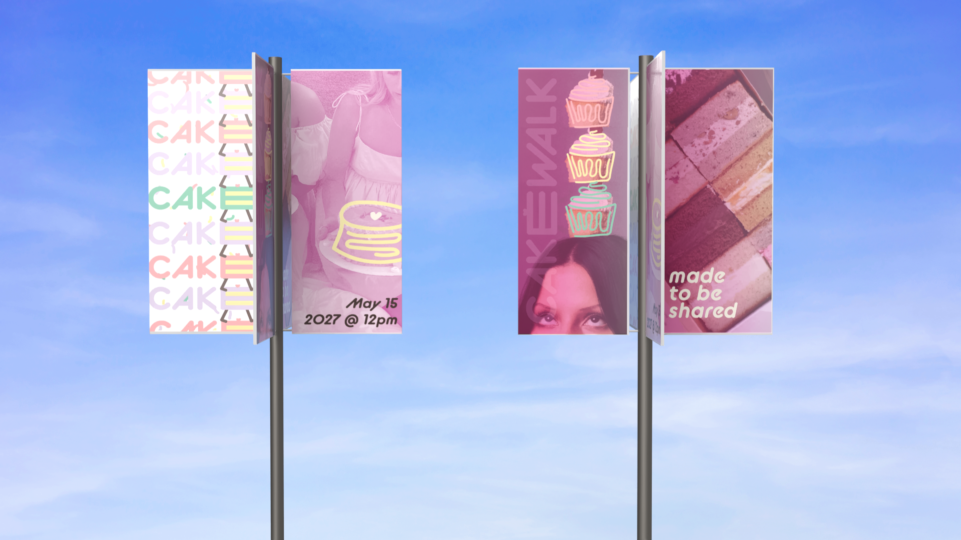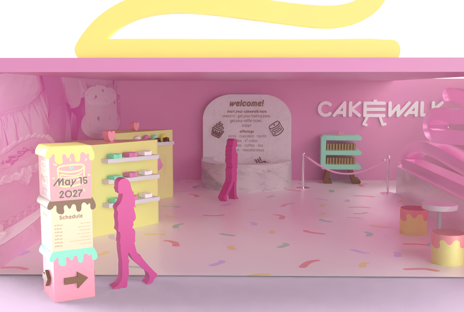 Cakewalk is an immersive dessert tasting pop-up that reimagines cake sampling as a cohesive, brand-driven experience. Designed for young, food-focused audiences, the concept draws from nostalgic birthday imagery and soft pastel material palettes to create a playful yet structured environment optimized for engagement and social sharing.
