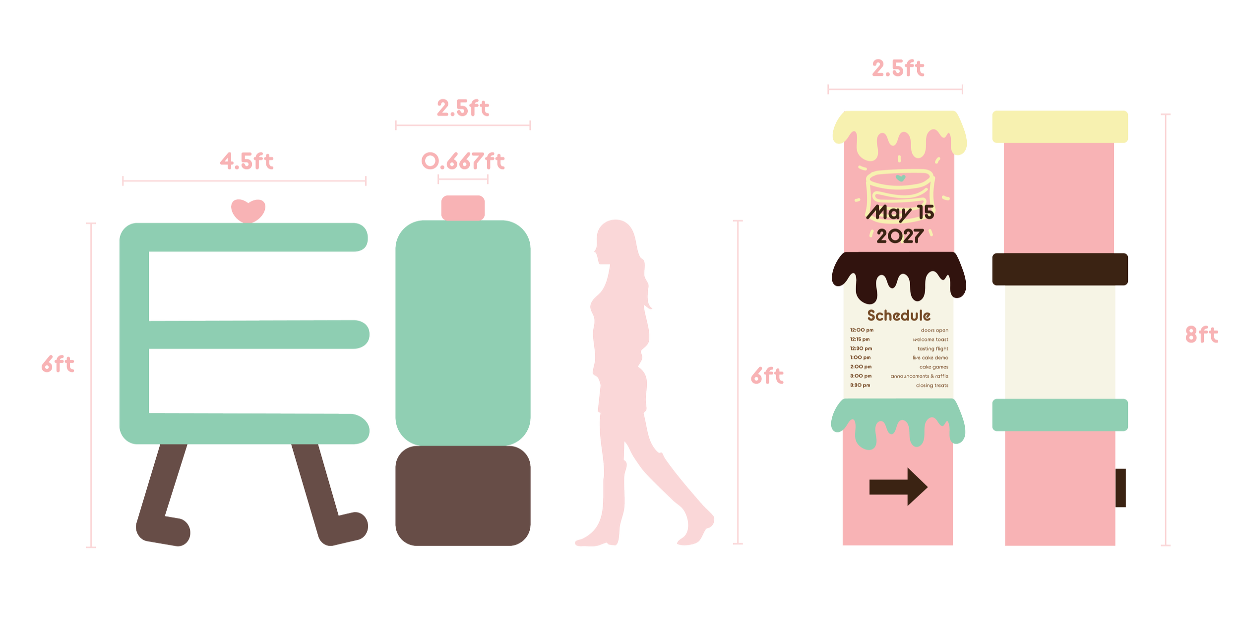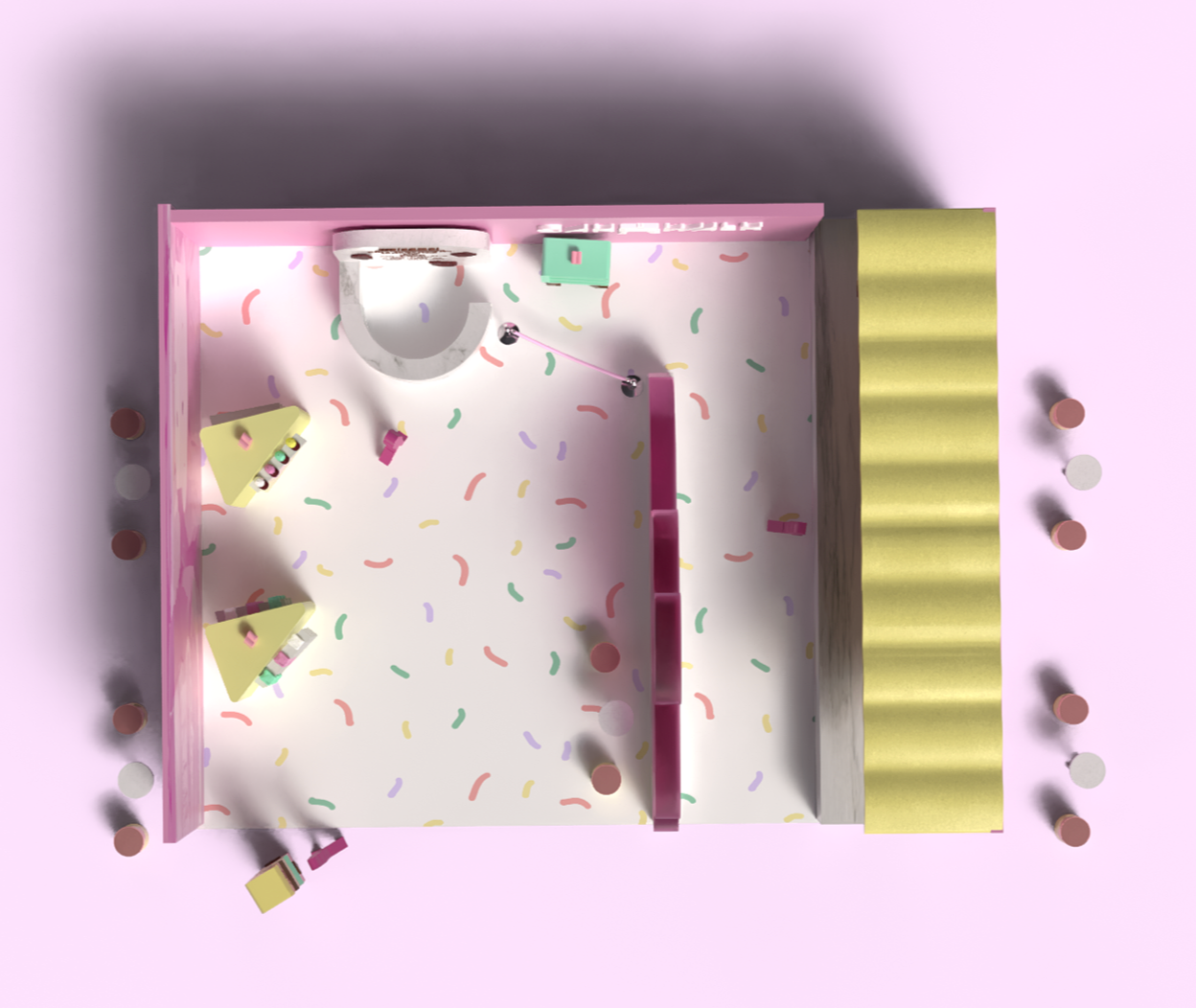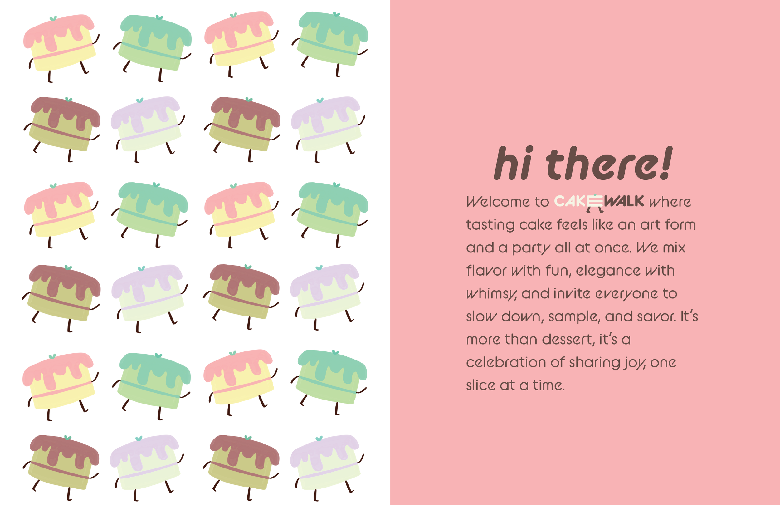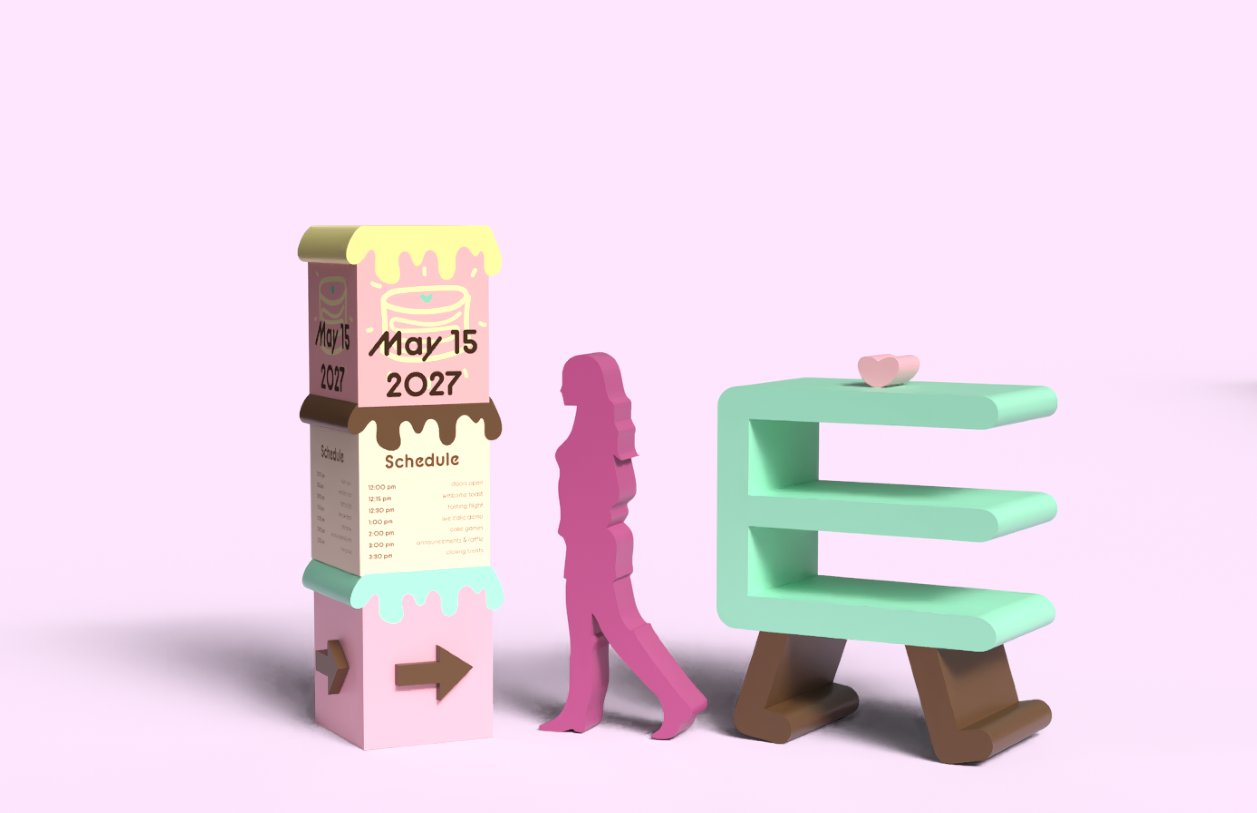 Cakewalk is an immersive dessert tasting pop-up that reimagines cake sampling as a cohesive, brand-driven experience. Designed for young, food-focused audiences, the concept draws from nostalgic birthday imagery and soft pastel material palettes to create a playful yet structured environment optimized for engagement and social sharing.