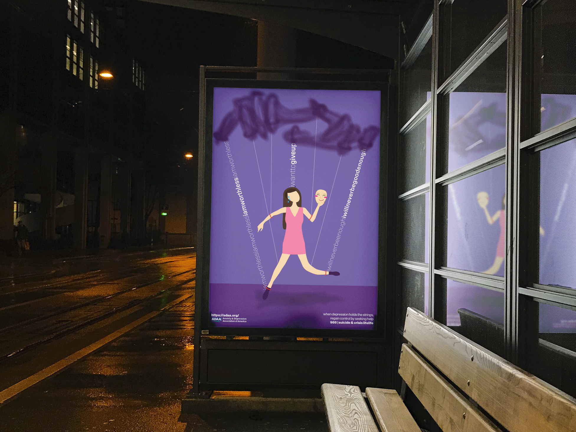 This project explores how negative thoughts can take control of the mind, using a puppet metaphor to make an invisible struggle feel visible. I aimed to create a mental health awareness campaign that is both emotional and direct, encouraging people to recognize these internal battles and seek support. Through this project, I learned how to translate complex emotions into clear visual storytelling and use design to spark awareness and conversation.